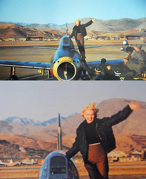 메릴린먼로가 지난 1954년2월 참전 미군 위문을 위해 한국을 방문해 대구 K-2비행장에서 전투기에 오른 모습이 찍힌 비공개 사진이 부산에 사는 배기복씨에 의해 공개됐다.