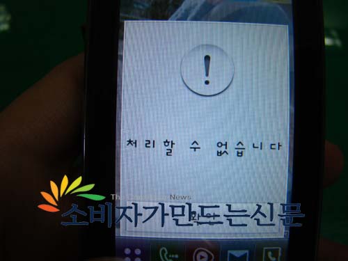 며칠 사용하지 않아 휴대폰 사용 시 외장메모리 인식오류와 전원이 저절로 ON-OFF되는 증상으로 가입대리점에서 불량진단을 받고 새 제품으로 교환받았다. 그러나 교환받은 휴대폰 또한 전원문제와 통화 시 잡음이 심해 바쁜 시간을 쪼개 지난 17일 AS센터를 찾았다.