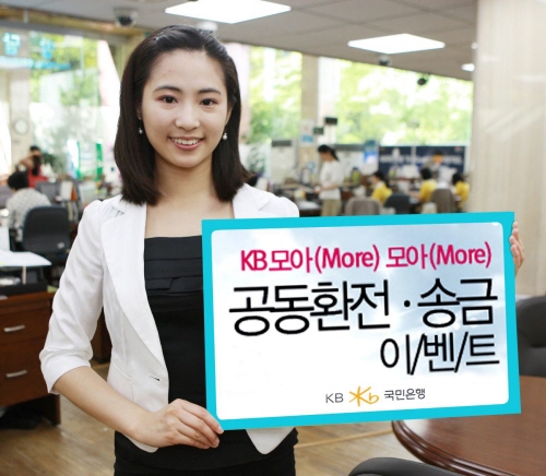 국민은행이 3일부터 이달 23일까지 모집 회차별로 우대율을 달리하는 'KB 인터넷 모아모아(More) 외화 공동환전ㆍ송금 이벤트'를 실시한다.