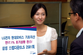 삼성증권은 ‘삼성증권 ELS 2581회’를 4일부터 6일까지 판매한다고 밝혔다. 이 상품은 LG전자와 현대모비스를 기초자산으로 2년 후 주가가 최초 설정시보다 40% 이상 하락하지 않으면 연 17.10%의 수익을 지급한다.