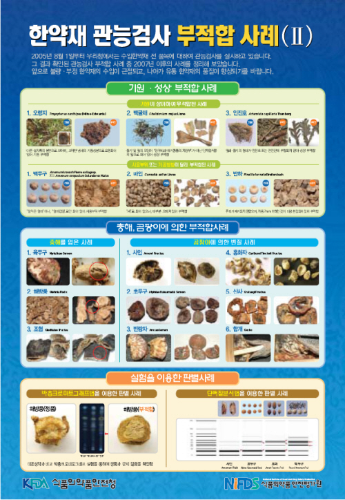 2007년 이후 두 번째로 제작된 포스터에는 저질 한약재 판별사례를 ▲위조되었거나 변질된 사례 ▲해충과 곰팡이로 인한 부적합 사례 ▲최신분석법을 이용한 과학적인 판별 사례 등의 유형별로 구분해 수록했다.
