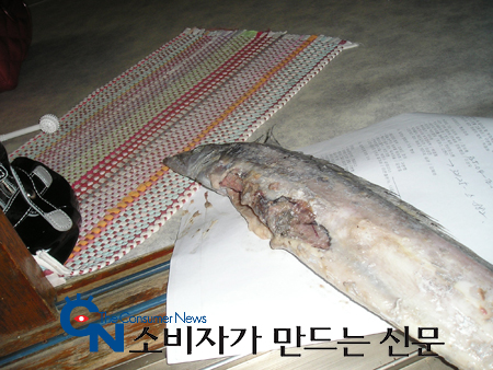 당시 생물이 없는 관계로 냉동제품을 구입한 임 씨 일행은 아이스박스에 제품을 담아 집까지 운반했다. 하지만 다섯 가구가 나누기 위해 갈치를 손질하려보니 내장이 모두 터져 있는 것은 물론 생선살이 거의 먹지 못할 정도로 흐물흐물 부스러졌다. 살이 모두 엉겨 붙어 죽처럼 돼 있는 상태였다.