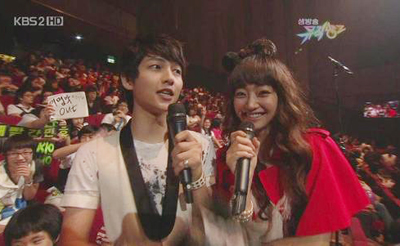 7일 생방송으로 진행된 '뮤직뱅크'에서 새로운 진행자로 나선 탤런트 서효림과 송중기는 무대와 객석을 오가며 진행했다.