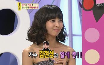 김혜나는 지난 10일 방송된 SBS ‘야심만만2’에 출연해 “가수 김현성씨와 열애중이다”라고 공개했다.