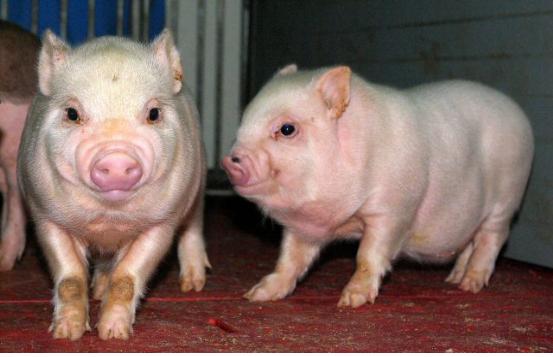 인간의 면역기능 유전자를 지닌 형질전환 복제 미니돼지(왼쪽). 오른쪽은 일반 미니돼지.