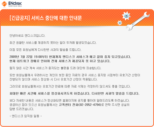 엔디스크의 최근 동향을 살펴보면 ‘먹튀’의혹이 짙다. 7월22일 서비스 중단 한 달 전부터 포인트 전환에 문제가 생기거나 두 차례의 서버 다운으로 회원들을 불안하게 만들었다.