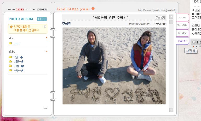 주아민이 자신의 미니홈피에 'MC몽의 연인 주아민'이라는 제목의 글을 올렸다.
