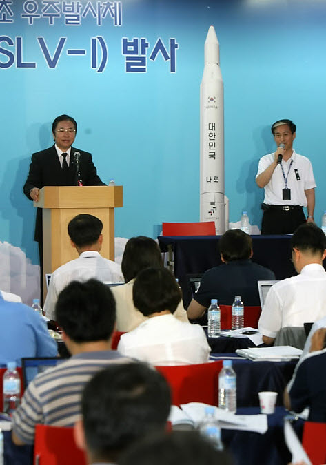한편 국립과학과천관 등은 나로호의 발사중계 모습을 실황중계할 예정이다. (사진/연합뉴스=교과부 관계자가 나로호 발사와 관련 언론브리핑하고 있다)