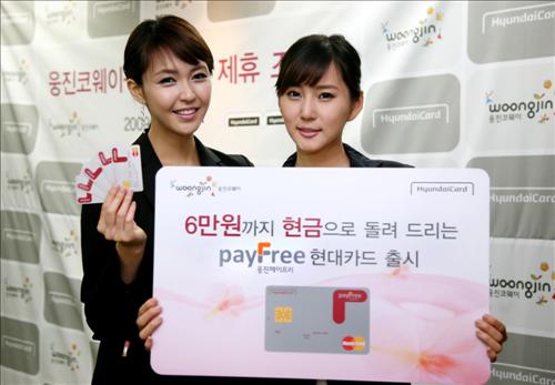페이프리 서비스 중 신용카드 가입자는 11만 1천150명으로, 웅진코웨이는 지난해 10월과 올 6월 각각 외환카드, 현대카드와 제휴해 페이프리 카드를 선보였다.