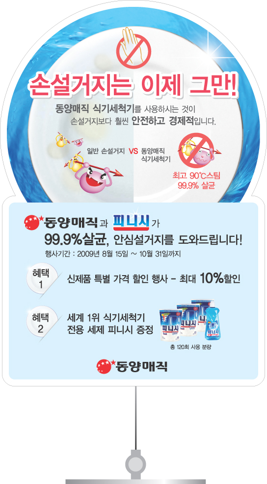 정상훈 동양매직 상품기획팀장은 "손으로 하는 설거지보다는 고온 스팀살균이 가능한 식기세척기를 사용하는 편이 훨씬 안전하고 경제적"이라며 "고객들의 가계경제에 보탬이 될 수 있는 다양한 사은행사를 지속적으로 진행하겠다"고 밝혔다.