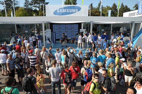 특히 20일(현지시간)에는 이번 대회 삼성전자의 홍보대사이며 여자 창던지기 경기에서 1위를 차지한 독일의 육상영웅 ‘슈테피 네리우스(Steffi Nerius)’가 홍보관을 방문, 팬사인회를 개최하는 동안 1천여명의 관람객이 몰려 들어 눈길을 끌었다.