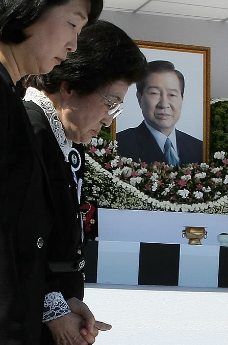 이날 오후 김대중 전 대통령의 영결식에는 부인 이희호 여사와 세아들 홍일 홍업 홍걸씨가 유족으로 참석했다. 또 이명박 대통령과 김윤옥 여사, 고 노무현 전 대통령의 영부인 권양숙 여사와 아들 노건호씨, 주한 외교사절 등 정부와 유족 측이 초청한 2만 4,000여명 국내외 각계각층 인사들이 참석했다.