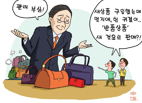 소비자들은 분명히 제값을 주고 산 제품에서 뚜렷한 사용 흔적이 발견돼 경악을 금치 못하고 있다. 새 핸드백에 먼지가 수북하고 재포장한 흔적이 역력하거나 심지어 새 핸드백 안에 짝 없는 귀걸이가 뒹굴고 있는 경우도 있어 소비자들을 당혹스럽게 하고 있다.