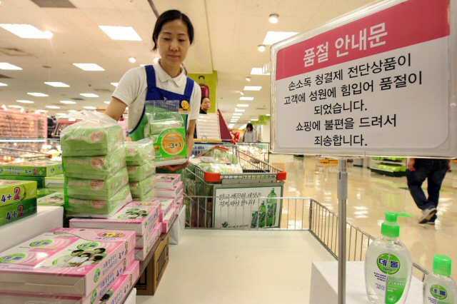 백화점이나 대형마트도 관련 용품이 속속 품절을 맞고 있다. 신세계 이마트의 경우 손세정제 '데톨'이 지난달 30일 동나 급히 추가 물량을 발주했다.