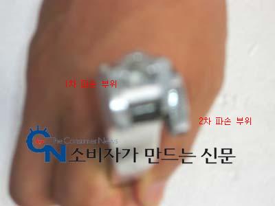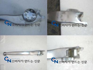 이에 대해 S&T모터스 관계자는 "레버를 수거해 확인한 결과 브레이크 레바를 연결하는 부위가 부러져 있었다"면서 "사진에서 보듯 짧게 부러진 곳의 파손 면이 마모된 점을 봐서 먼저 균열이 생겨 부러져 있었고, 길게 부러진 곳은 위로 젖혀지며 부러진 것으로 보인다"고 설명했다.
