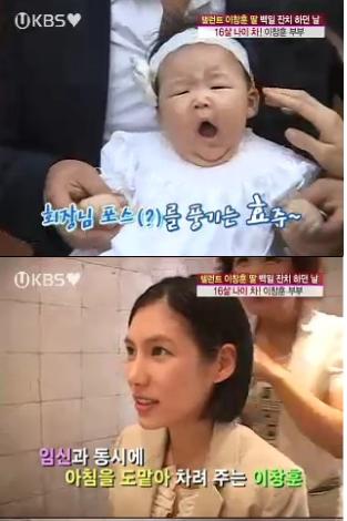 지난 5월 8일 건강한 딸을 얻은 이창훈은 3일 방송된 KBS 2TV ‘여유만만’을 통해 딸 효주의 100일 잔치를 공개했다.