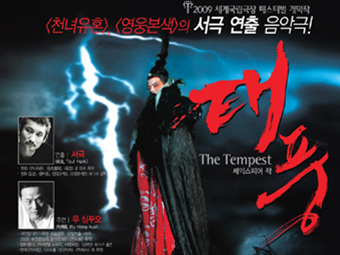 ‘천녀유혼’, ‘영웅본색’의 감독 서극이 음악극 ‘태풍’으로 국내 관객들을 찾는다. 2009 세계 국립극장 페스티벌의 개막작으로 선정된 이 작품은 셰익스피어의 희극 ‘템페스트’를 원작으로 했다. 또한 경극의 세계화를 위한 대만 당대전기극장의 대표작이기도 하다.