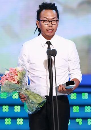 MBC 무한도전의 김태호 PD가 3일 오후 여의도 KBS홀에서 열린 제36회 한국방송대상 시상식에서 TV연출상을 수상하고 소감을 말하고 있다.