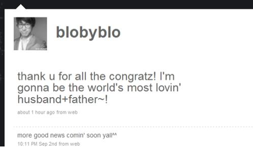 타블로는 5일 오후 3시께 자신의 트위터를 통해 "축하해주신 것 감사드립니다. 전 세상에서 가장 다정한 남편과 아빠가 될 거에요"라고 행복함을 드러냈다.
