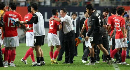 허정무 감독은 박주영과 이동국을 투톱으로 내세우고 좌우 날개에 박지성과 이청용을 기용했다.