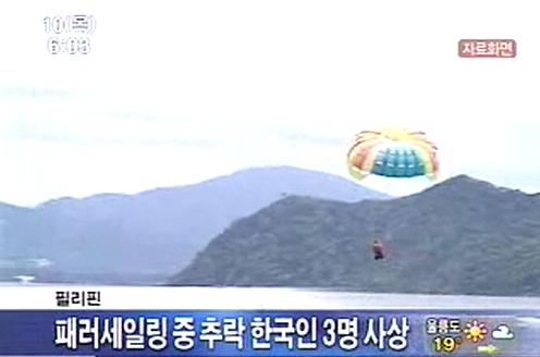 지난 5일 필리핀 휴양지 보라카이섬에서 페러세일링을 즐기던 한국인 남성 2명이 바다로 추락 사망하고 여성 1명이 중상을 입는 사고가 발생했다.