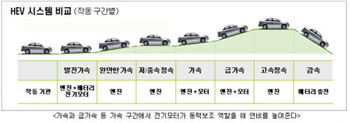 반면 엔진만을 사용하는 고속 정속주행 시는 연료 절감효과를 크게 누리기 힘들다.