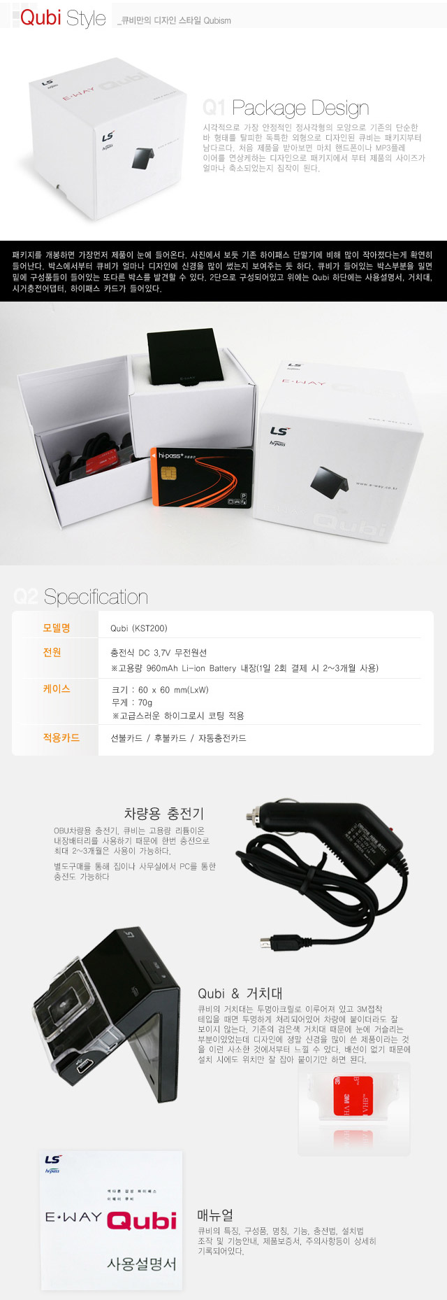 하이패스 단말기들이 나오고 있는데 그 중 이번에 살펴볼 하이패스 단말기는 LS전선에서 출시한 이웨이 Qubi(이하