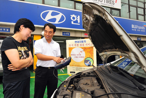 추석 명절 이전인 이달 15일부터 10월1일까지 전국 1천500여 곳에 이르는 직영서비스센터 및 서비스 협력사를 통해 냉각수, 엔진오일, 브레이크 오일, 전구류, 타이어 공기압, 차량 탑재용 공구 유무 등 귀향길 안전운행을 위한 필수사항들을 점검해 준다. 또 장거리 운행에 필요한 차량 관리 및 운전 요령을 알려 준다.