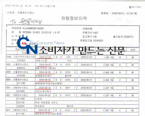 김 씨가 <소비자가 만드는 신문>에 보낸 차량정비이력은 A4한 장을 가득 메우고 있을 정도였다. 그간 겪었을 스트레스가 얼마나 심했을지 짐작케 하는 정황이었다.