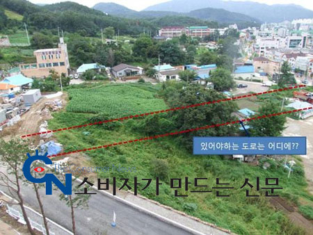 도면과 카탈로그상에 표시된 주 출입 도로는 아직까지 만들어 지지도 않은 상태다. 입주가 한 달도 채 안 남은 상황이어서 입주민들은 황당할 뿐이다.