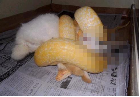 ‘토끼의 죽음’, ‘렛(쥐)의 죽음’ 이라는 제목으로 게시된 사진들은 애완용 뱀에게 살아있는 토끼와 쥐 등을 던져주고 잡아먹는 과정이 담겨있다.