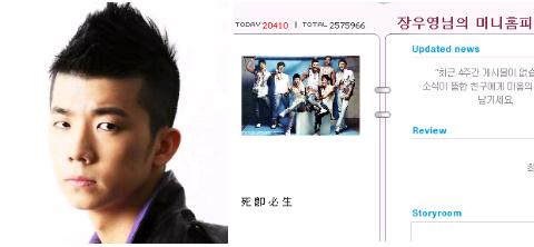 당일 장우영은 메인글 '死卽必生(사즉필생)'을 적고 2PM 데뷔곡 '10점 만점에 10점' 인스트루멘탈 버전을 배경음악으로 걸어두었다.