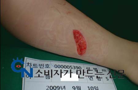 아들이 고통을 호소하는 왼쪽 종아리를 살펴보자 살점이 뚝 떨어져 나가 차마 눈 뜨고 볼 수 없을 정도로 참혹했다. 즉시 전신마취가 필요한 대수술을 받아야 했다.