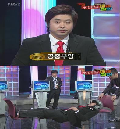 바로 '허경이 형'. 허경이 형은 '고생 끝에 즐거움이 온다는 뜻은 4자 성어는?'이란 퀴즈에 "공중부양이다. 가라앉은 경제 띄워야 하니까"라며 "내가 공중부양을 하면 국민들이 즐거워 한다"고 시범을 보였다.