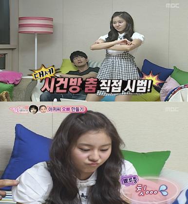 19일 방송된 MBC'우리 결혼했어요'에서 애프터스쿨의 유이가 브라운아이드걸스의 시건방춤을 선보이며 귀여운 매력을 발산했다.