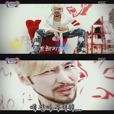 MBC무한도전 '무한 홈쇼핑'에서 노홍철이 빅뱅 지드래곤의 '하트브레이커'를 패러디해 무서운(?) 인상을 남겼다.