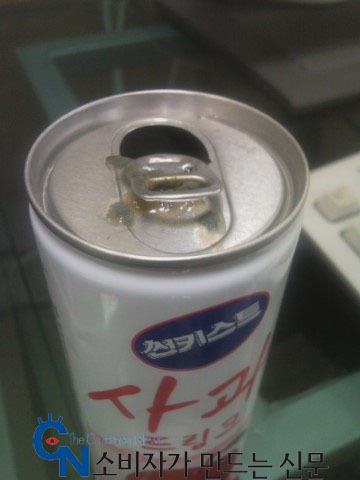 <▲이물질이 나온 음료수. 캔 상단에 이물질 덩어리가 보인다>