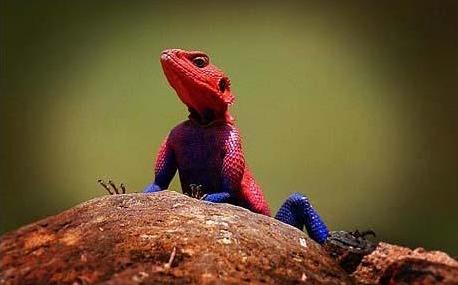 붉은 상체에 파란색 타이즈, 흡사 스파이더맨과 같은 복장을 한 도마뱀이 사진에 포착돼 화제가 되고 있다.