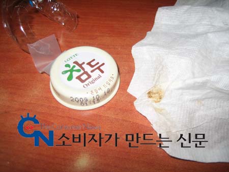 서울시 관철동에 사는 김 모(여.50세)씨는 지난 17일 회사 앞 편의점에서 롯데칠성음료의 '참두'(200㎖) 한 병을 사 먹었다. 반 쯤 먹던 김 씨는 뚜껑에 곰팡이로 보이는 검은 얼룩을 발견하고 기겁했다.