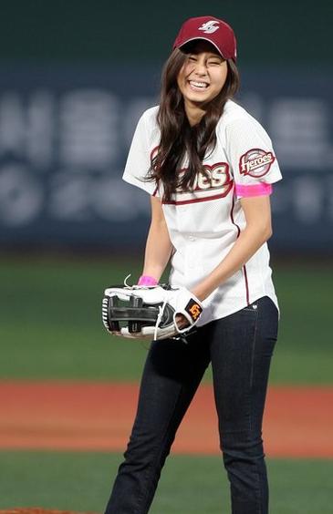유이는 23일 오후 서울 목동야구장에서 열린 2009 프로야구 우리 히어로즈 대 두산 베어스의 경기에서 시구를 선보였다.