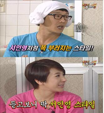 서인영은 "나도 핸드폰 많이 부러뜨렸다"며 "내 남자친구가 되려면 내 성격을 잘 받아주는 것도 중요하지만 1년 정도 수습기간이 필요하다. 잔심부름 정도는 남자친구가 해줄 수 있는 것 아닌가? 1년 동안 남자를 지켜본 뒤 사귈지를 결정한다"고 말해 큰 웃음을 자아냈다.