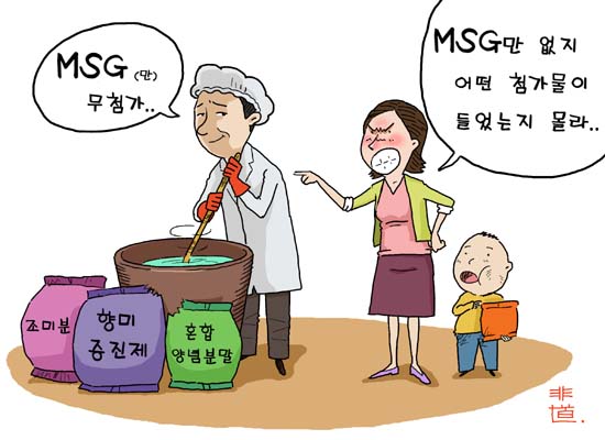 이 씨가 걱정하는 MSG(Monosodium glutamate)는 인공조미료를 대표하는 식품 첨가물. 가공식품에 첨가돼 음식의 감칠맛을 내는데 쓰지만 과다 섭취할 경우 신경 세포막을 파괴하고 특히 유아의 경우 극소량이라도 뇌하수체가 파괴될 가능성이 있으며 일반 대사에도 이상을 불러올 수 있는 것으로 알려지면서 소비자들의 경계 대상 1호 식품첨가물이 되어 왔다.