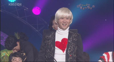 왕비호는 27일 ‘개그콘서트-봉숭아 학당’에서 금발 가발과 검정색 재킷을 입고 출연해 주목을 끌었다.