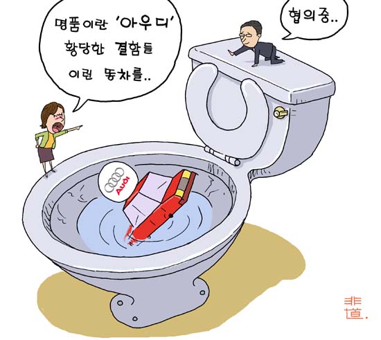 독일 명품 아우디 차량의 주변 부품이 불량 일색인데다 정비조차 원활치 않아 반 년 넘게 극심한 스트레스에 시달리고 있다는 소비자의 하소연이 제보됐다. 작동불량 리모컨, 반쪽으로 쪼개지는 키, 저절로 작동되는 CD플레이어 등 하자 내용 또한 황당하기 짝이 없다.