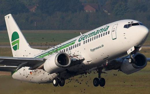29일 일간 빌트 온라인판은 뒤셀도르프 공항에서 코소보 프리슈티나로 향할 예정이던 게르마니아항공편이 시속 300km에 이르렀을 즈음 찌르레기 떼와 충돌했다고 보도했다.