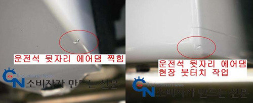 전주시 다가동의 송 모(남.37세)씨는 지난 8월 21일 GM대우의 토스카 Lpi CDX 풀옵션 모델을 출고 받으면서 차량 뒷바퀴 인근 에어댐 안쪽에 도색이 덜된 부위를 발견했다.
