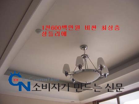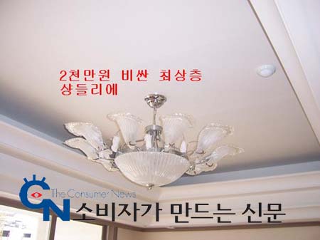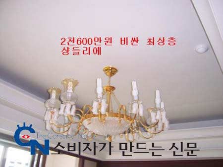 올해 3월 입주한 조 모(남)씨는 "전체 천장 높이가 높아진 것이 아니라 거실 천장만 우물형으로 높아졌다. 또 고급형 인테리어로의 차별화는 커녕 조악한 샹들리에를 보면 기가차서 말이 안 나온다"고 분통을 터트렸다.