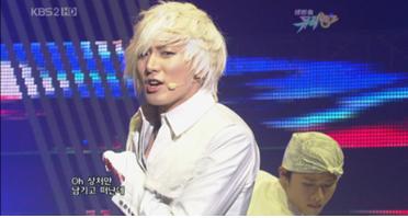 진태화는 9일 '뮤직뱅크' 무대에서 노란 머리에 흰 깃털을 붙인 ‘날개머리’로 주목을 받았다. 폭발적이고 화려한 무대 퍼포먼스로 좌중을 압도했다.