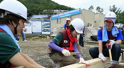 이외에도 올해는 ‘메콩 프로젝트’ 란 이름으로 태국 치앙마이를 비롯해, 캄보디아 프놈펜, 라오스 비얀트얀, 베트남 하노이, 중국 쓰촨 등 메콩강유역 5개국에서 집짓기가 동시에 진행되며, 모두 174세대의 집을 신축한다. (사진-연합뉴스, 한국해비타트의 활동모습)