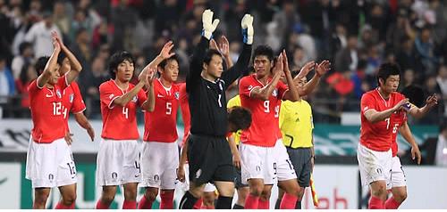 허정무 감독은 박주영-이근호 투톱을 내세웠고 좌우 날개에 박지성-이청용 듀오를 기용했다. 중앙 미드필더는 기성용과 김정우를 배치했고, 차두리를 포백 수비라인의 오른쪽 풀백으로 세웠다.
